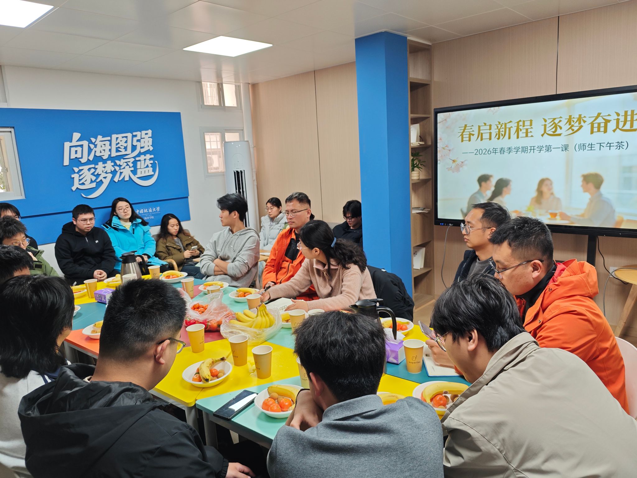 在55栋公寓社区驿站举办2026年春季学期开学第一课暨第二十期师生下午茶。学院党委副书记钟苹、2022级班主任匡洋民、于男参加活动。团委书记、辅导员陈波主持活动。