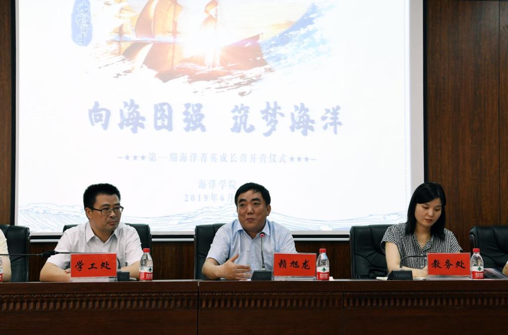 “海洋菁英成长营”第一期开营仪式在东教楼A708会议室顺利举行。副校长赖旭龙,学工处处长邬海峰、组织副部长冷再心、教务处副处长王莹、科发院副院长刘珩、校团委副书记朱荆萨参加开营仪式,Av影片