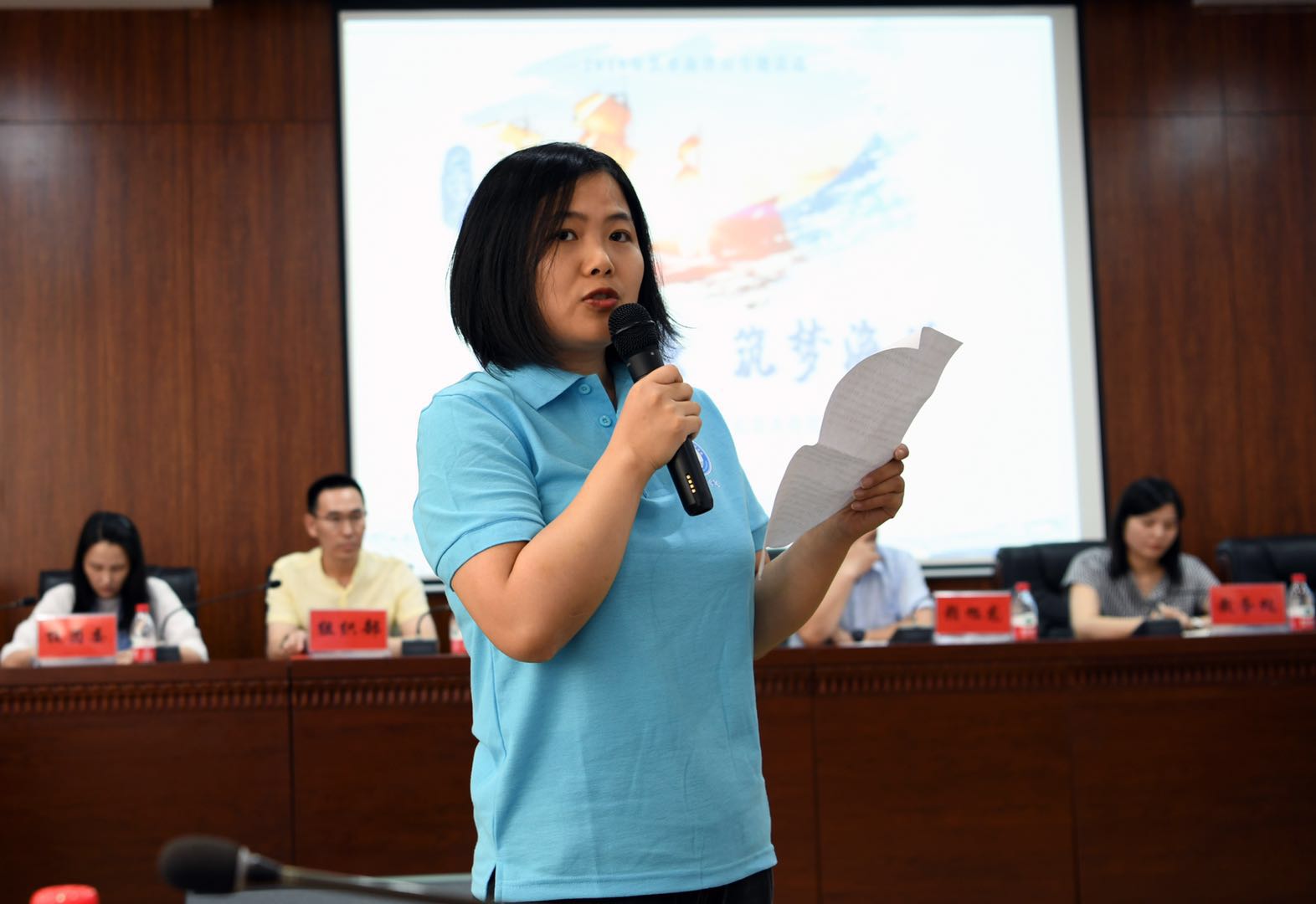 学工处处长邬海峰宣读《关于成立“海洋菁英成长营”的决定》。