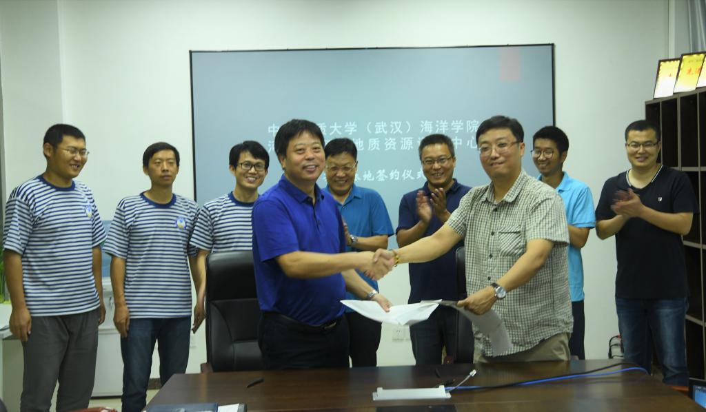党委书记成军、院长牟林、海洋工程与技术系主任蒋浩宇、教学秘书夏峰,河北省海洋地质资源调查中心党委书记杨玉山、队长郭连军、副队长张甲波以及中心业务骨干出席签约仪式。