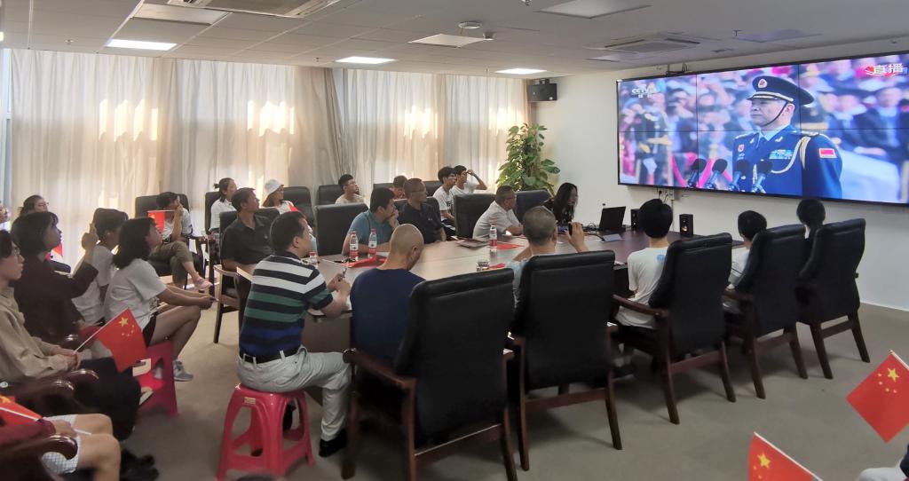 9点30分,在阅兵正式开始之前,学院老师和同学们就提前到达会议室,观看阅兵式之前的准备纪录片。10时,随着悠扬的庆典声响起,阅兵仪式正式开始。首先由中共中央总书记、国家主席、中央军委主席习近平发表重要讲话,随后举行了盛大的阅兵和群众游行。