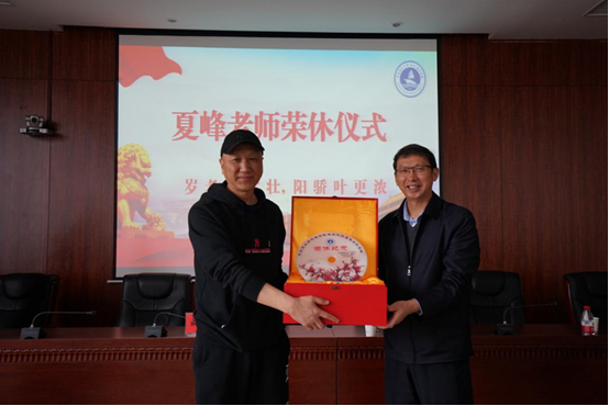 成立以来第一位光荣退休教师。夏峰老师认真负责做好学院教育教学相关工作,耐心细致解答学生学习咨询与学业疑惑,为学院人才培养和教学质量提高贡献了智慧和力量。他为学校建设、学院发展和学生成才,贡献了毕生力量,奉献了青春年华。成军书记代表学院党委和行政、全院师生,向夏峰老师表示衷心感谢和美好祝福!老教师是学院的宝贵财富,是年轻教师奋发向上的精神动力,他希望夏峰老师“退而不休”“常回家看看”一如既往的关心和支持学院发展。衷心祝愿夏峰老师“岁老根弥壮、阳骄叶更浓”,积极愉快地开始全新的退休生活。