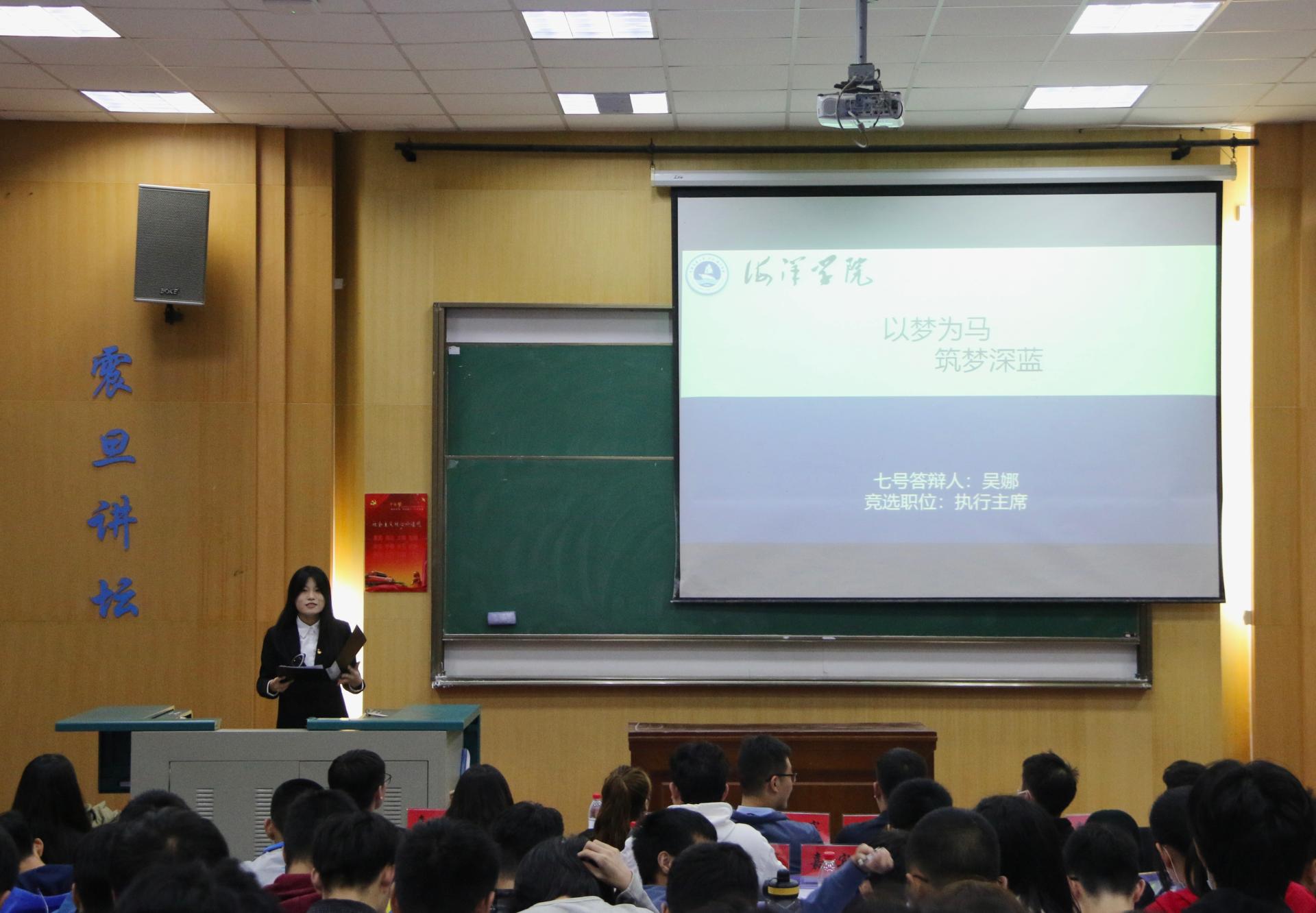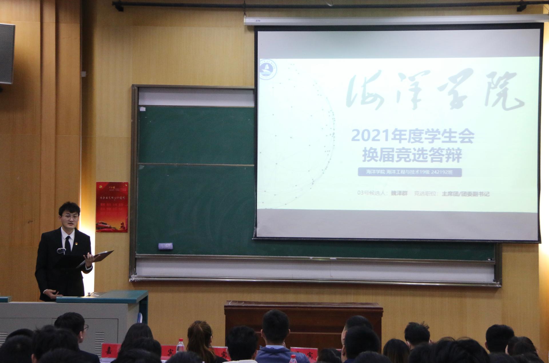 学生会执行主席郭航成向大会作题为《学习新思想,奋发新作为,改革再出发》的工作报告。报告从“着力思想引领,建设奋进海洋”、“弘扬严谨学风,搭建智慧海洋”、“立足青年成长,凸显活力海洋”、“展现学科特色,彰显卓越海洋”四个方面系统地回顾了第四次学生代表大会以来学生会的工作情况。报告指出2020-2021学年是Av影片