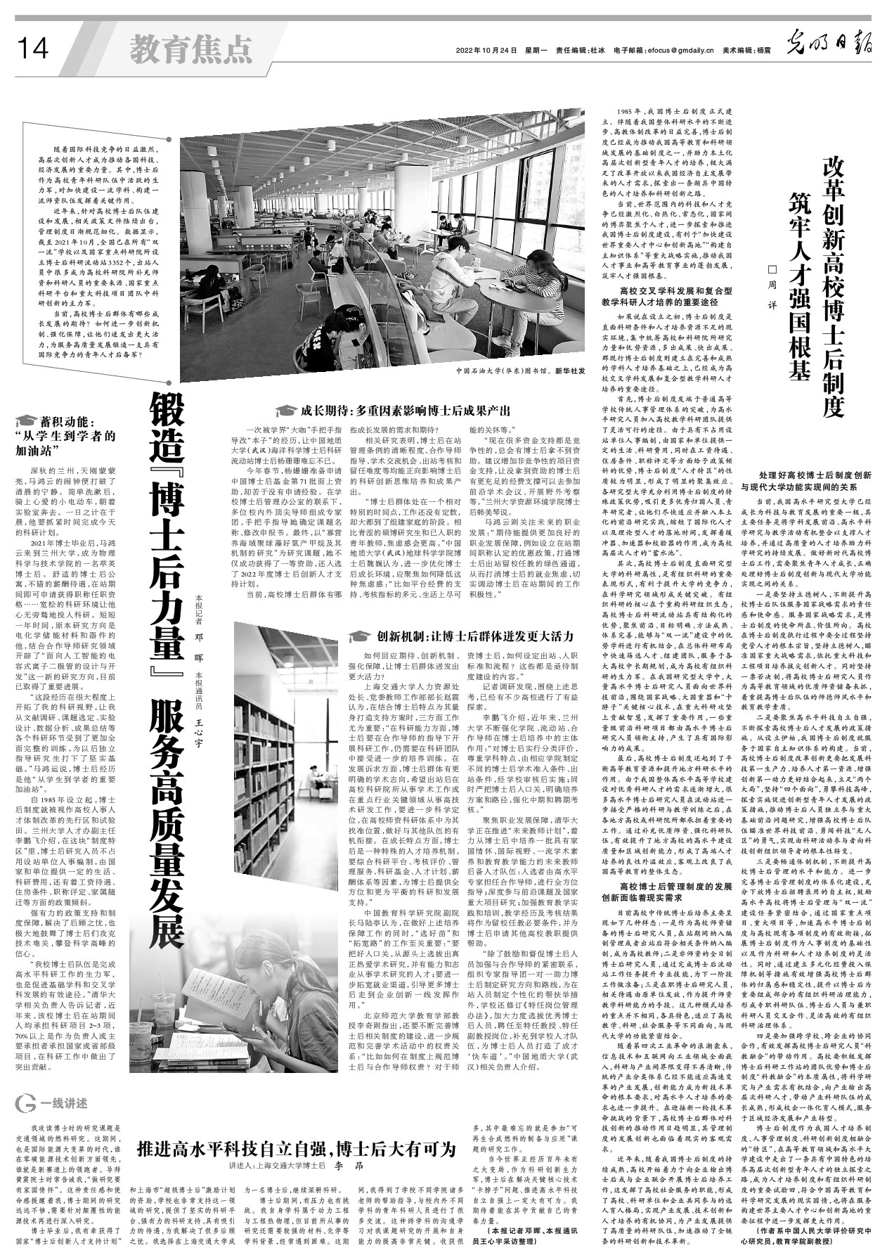 2022年10月24日,光明日报发表了一篇题为《锻造“博士后力量” 服务高质量发展》的报道。在“成长期待:多重因素影响博士后成果产出”版块中,报道了Av影片