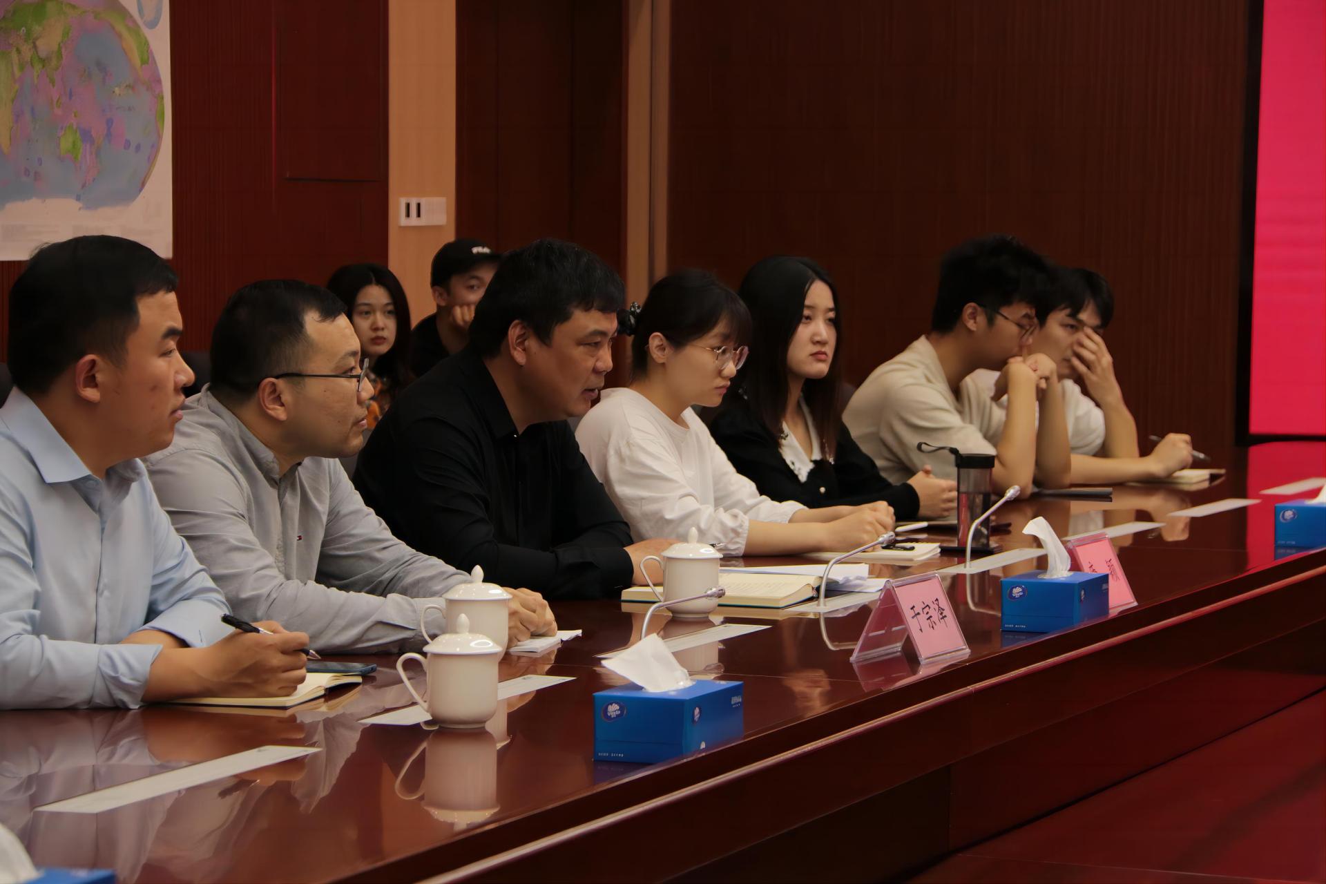 党委副书记钟苹、团委书记陈波携8名优秀学生前往广州海洋地质调查局开展访企拓岗并举行联培学生新老生交流会。广州海洋地质调查局人事教育处处长宋求精、人事教育处副处长唐颖、人事教育处许坤、海洋技术方法研究所业务室主任于宗泽参会交流。