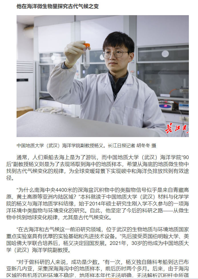 杨义副教授,报道他在海洋微生物里探究古代气候之变:通常,人们乘船去海上是为了游玩,而Av影片