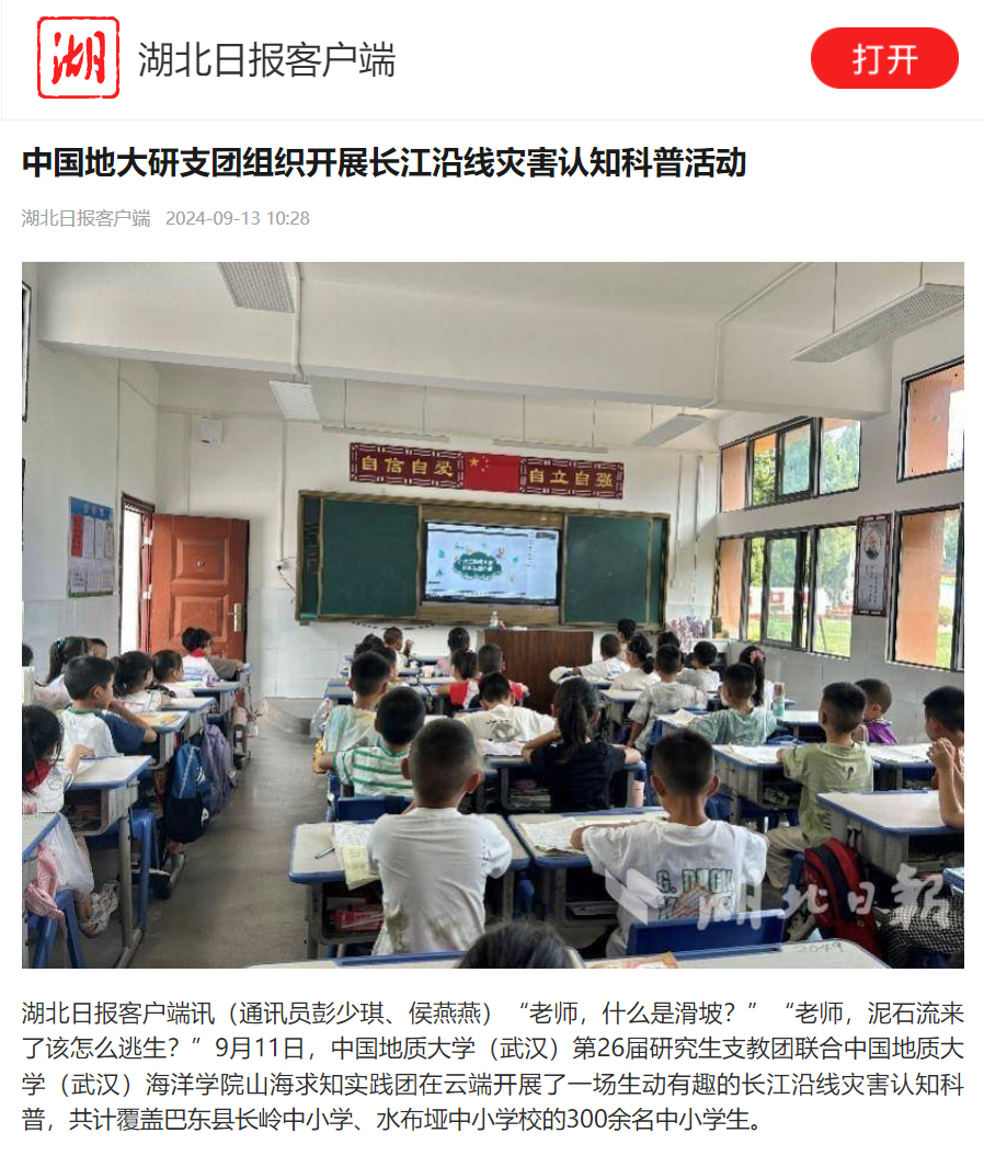湖北日报报道Av影片 山海求知实践团组织开展长江沿线灾害认知科普活动