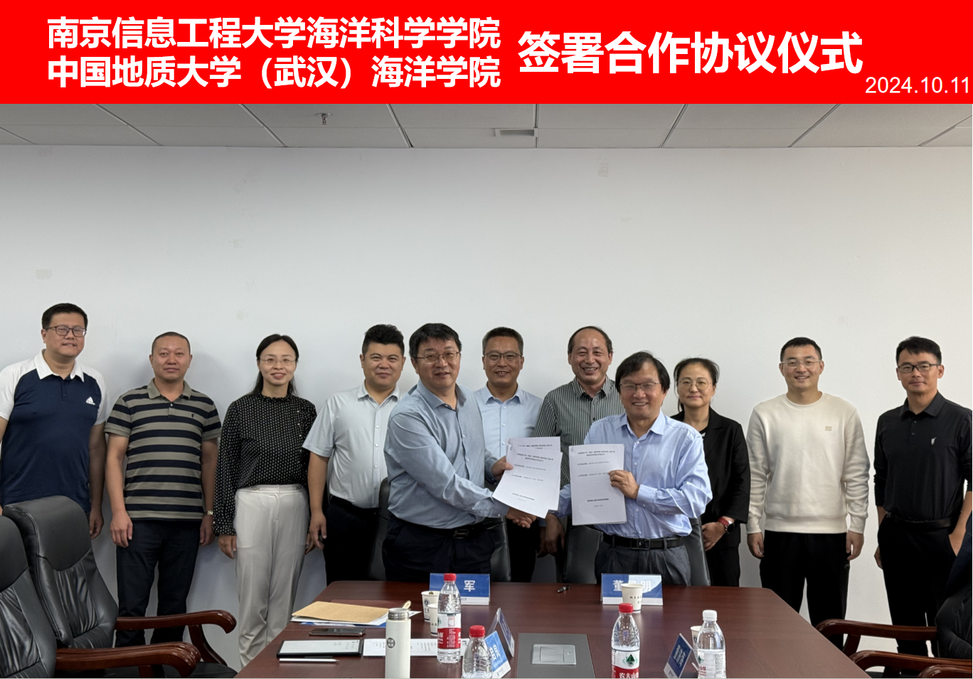 10月11日上午,南京信息工程大学海洋科学学院董昌明院长带队一行到学院开展调研交流,双方签署合作协议。孙军院长主持调研座谈会,院班子成员和系主任参加签署合作协议仪式。