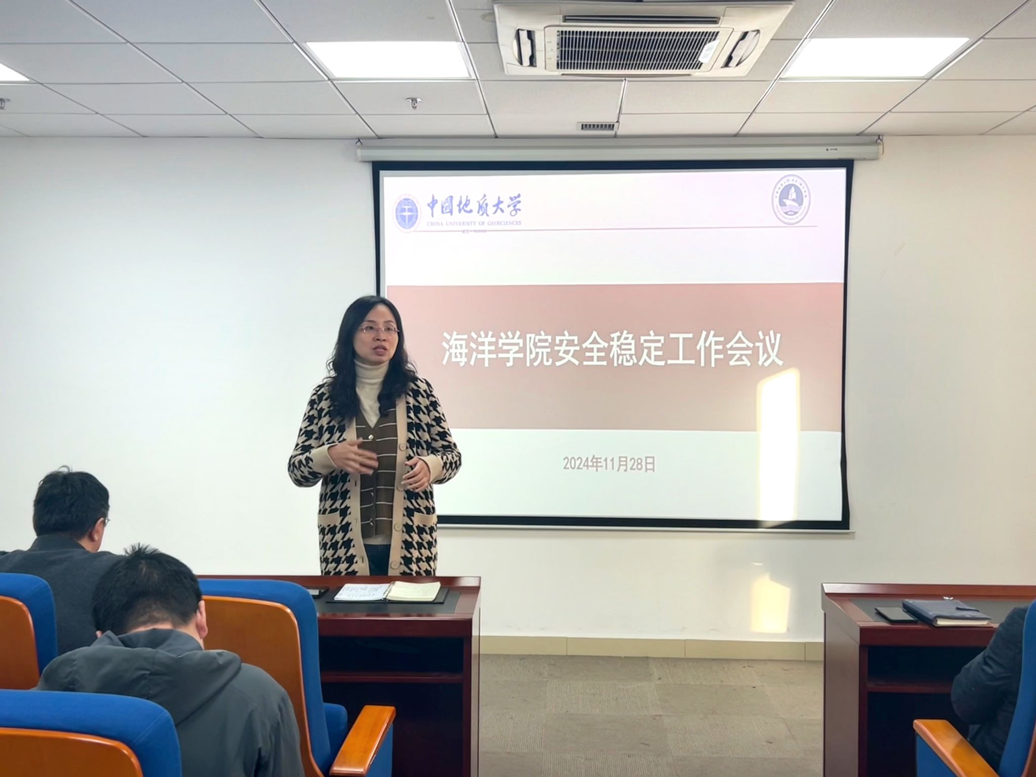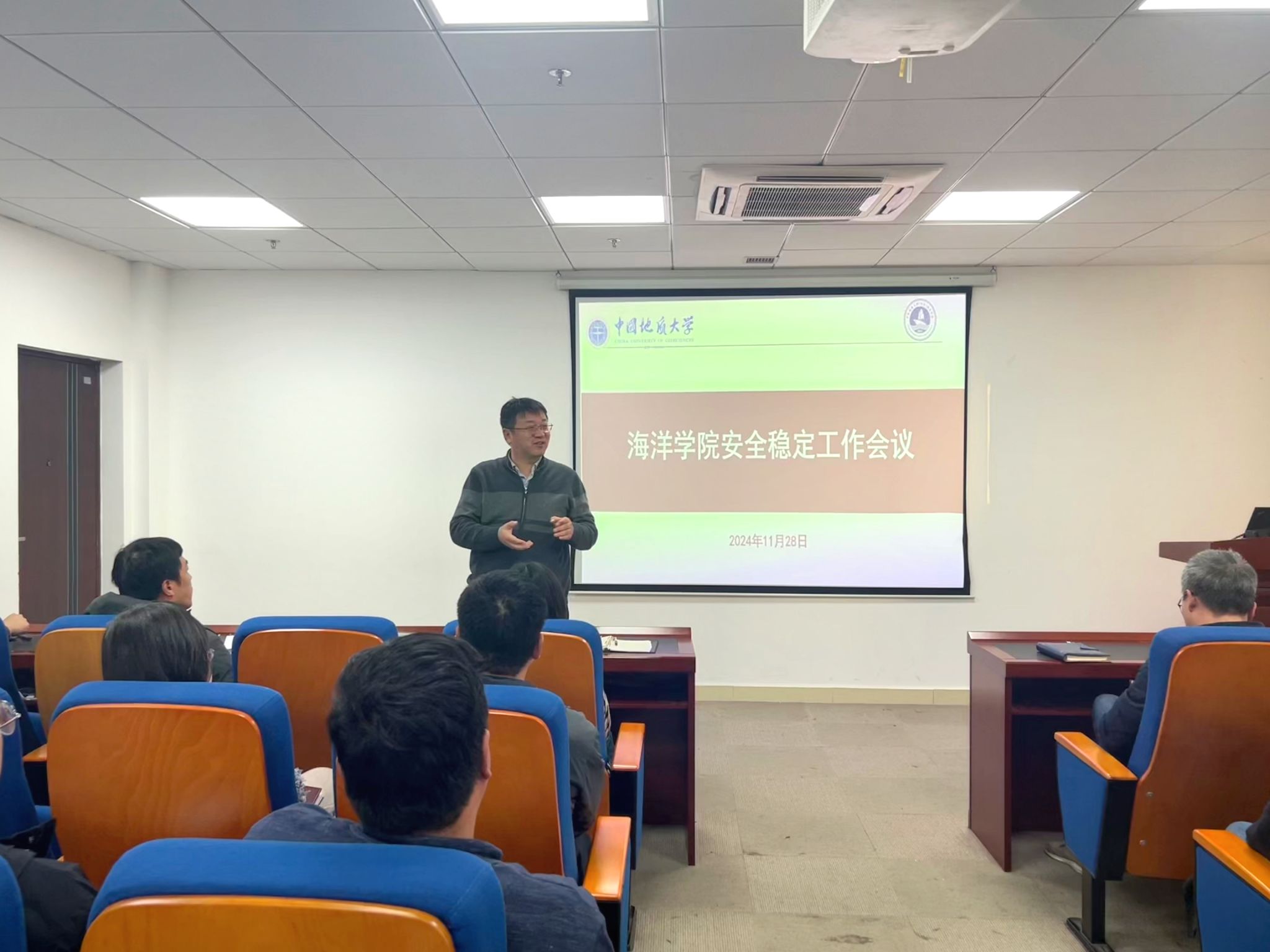 于东教A座1805会议室召开学院安全稳定工作会议。学院党委书记成军、院长孙军、党委副书记钟苹及各班班主任、研究生导师、学工组成员参加会议,会议由党委副书记钟苹主持。