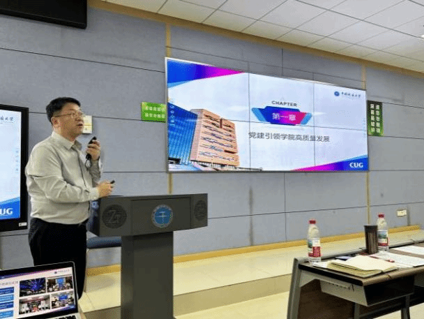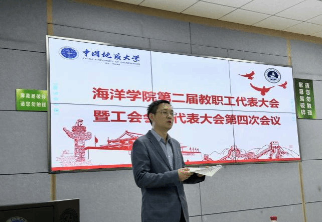 院长孙军代表班子做学院2024年度工作暨班子述职报告和财务工作报告。学院2024年锚定“提质增效年”发展主线,以习近平新时代中国特色社会主义思想为指引,统筹推进党的建设与事业发展深度融合;坚持全面从严治党主基调,深入开展党纪学习教育,制定《党纪学习教育实施方案》并创新打造“清廉地大读书角”;科学研究取得突破性进展,年均科研经费位居学校前列,学院教授牵头获批国家重点研发专项,多名教师斩获自然资源部科技进步奖,学院教师参与南海冷泉深潜、南极联合考察等重大任务;教育教学质量显著提升,新增多项省级教改项目,入选省级一流课程,研究生双一流生源率创新高;人才引育成效凸显,学院教师蝉联“全球前2%顶尖科学家”,多名教师获评“研究生的良师益友”;学生发展呈现多元活力,本科生团队连续三年斩获省级创新创业金奖,全年开展多场文体科普活动,构建起“心理帮扶-发展型资助-精准就业”全链条育人体系;学院全年以建设国际知名涉海研究型学院为目标,在海洋强国战略实践中彰显地大担当,为教育现代化注入强劲动能。