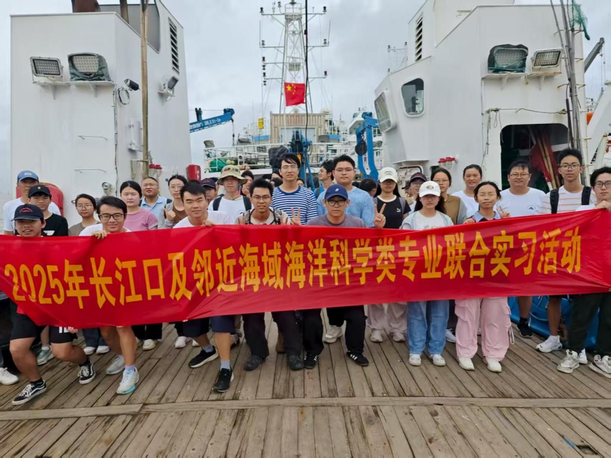 师生在“浙渔科2号”科学考察船