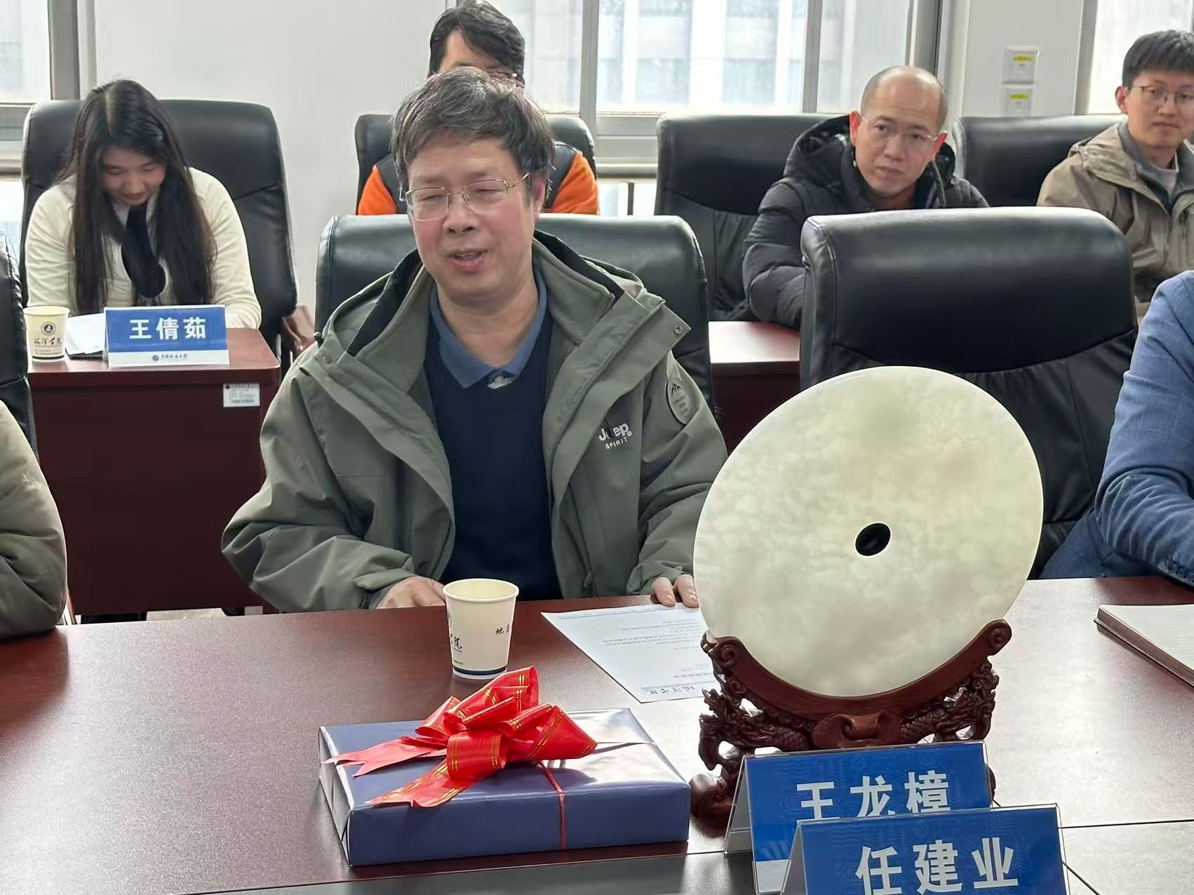 任建业教授代表海洋科学系师生向王龙樟教授赠送纪念礼物。