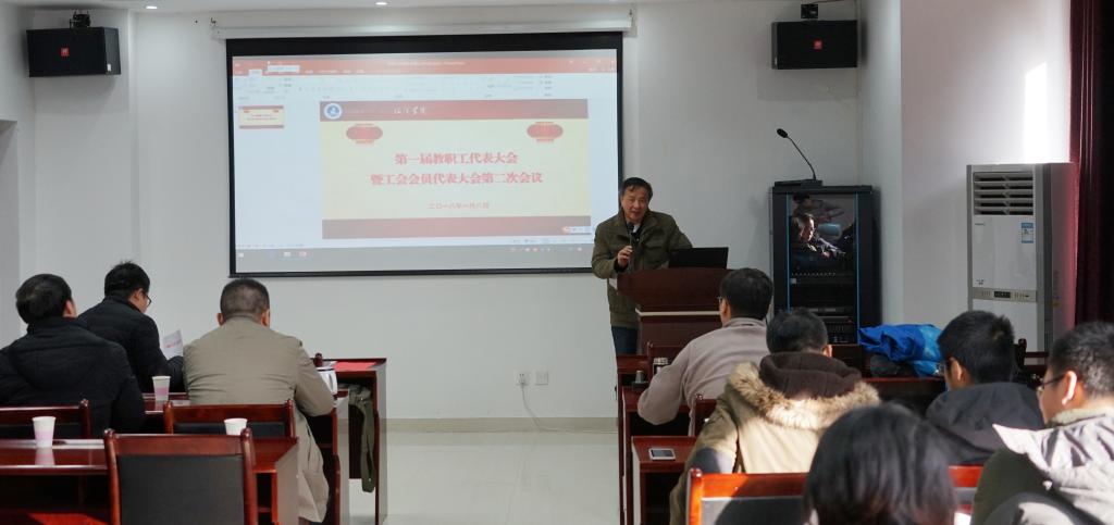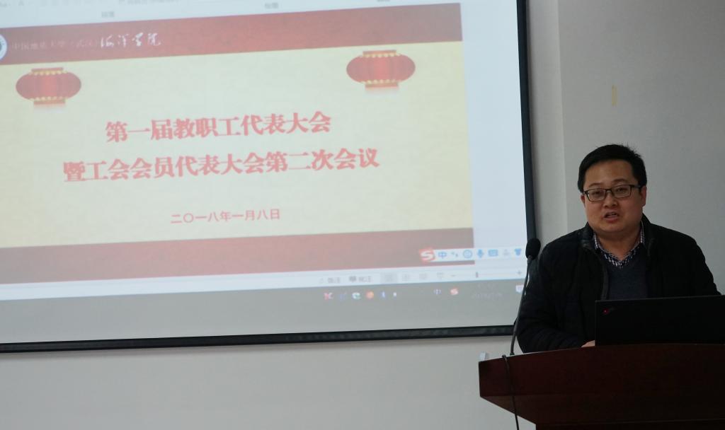 2018年1月8日,Av影片 (武汉)海洋学院第一届教职工大会第二次会议暨第一届工会会员大会第二次会议在丝绸之路学院105室隆重开幕,会议由院党委书记解习农同志主持,工会副主席高复阳同志到会祝贺并致贺词。