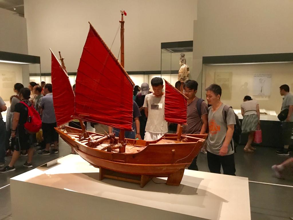 在中国古代史展厅,队员们从学习春秋战国发展的朴素海洋意识、秦汉时期的航海贸易业、唐代“海上丝绸之路”的进一步发展、宋元年间指南针的问世推动中国造船业和航海技术至世界遥遥领先的地位到明代“郑和下西洋”的光辉壮举,重温古代海洋战略思想光辉史。