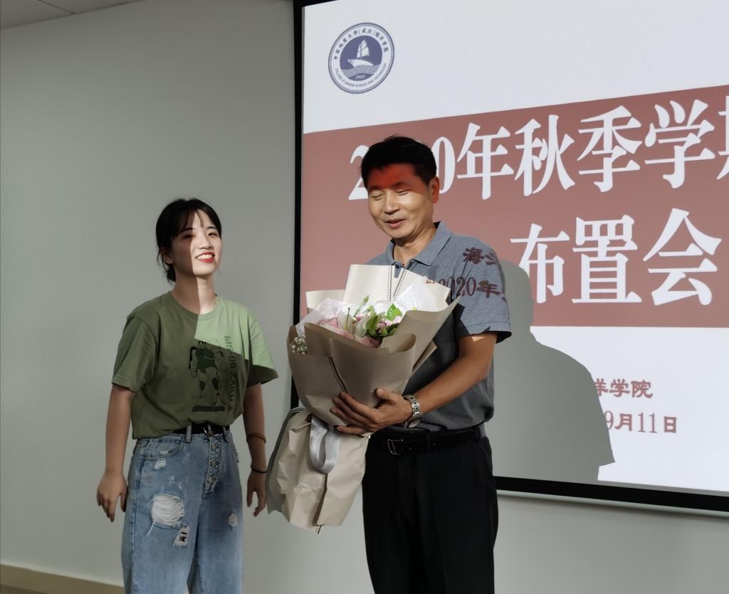 会前,学生代表向“2020年度荆楚好老师”陈刚教授敬献鲜花,向陈刚教授致以崇高敬意,祝福Av影片 全体教师教师节快乐。