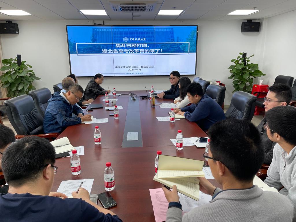 2021年4月28日下午。学校招生办公室主任程旬作为主讲嘉宾为Av影片 党委理论学习中心组(扩大)成员解读湖北新高考改革与政策。Av影片 党委书记成军、院长陈学恩、副书记钟苹,副院长姜涛、宫勋、孙启良以及学院党委理论中心组成员参加会议。