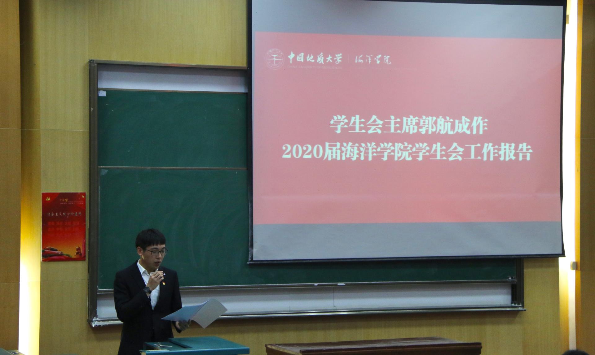 学生会执行主席郭航成向大会作题为《学习新思想,奋发新作为,改革再出发》的工作报告。报告从“着力思想引领,建设奋进海洋”、“弘扬严谨学风,搭建智慧海洋”、“立足青年成长,凸显活力海洋”、“展现学科特色,彰显卓越海洋”四个方面系统地回顾了第四次学生代表大会以来学生会的工作情况。报告指出2020-2021学年是Av影片 继续实施并完善《团学机构改革方案》的一年,Av影片 学生会积极响应共青团改革再出发的号角,对现有团学组织框架进行改革调整,较圆满的完成了本年度的各项工作。