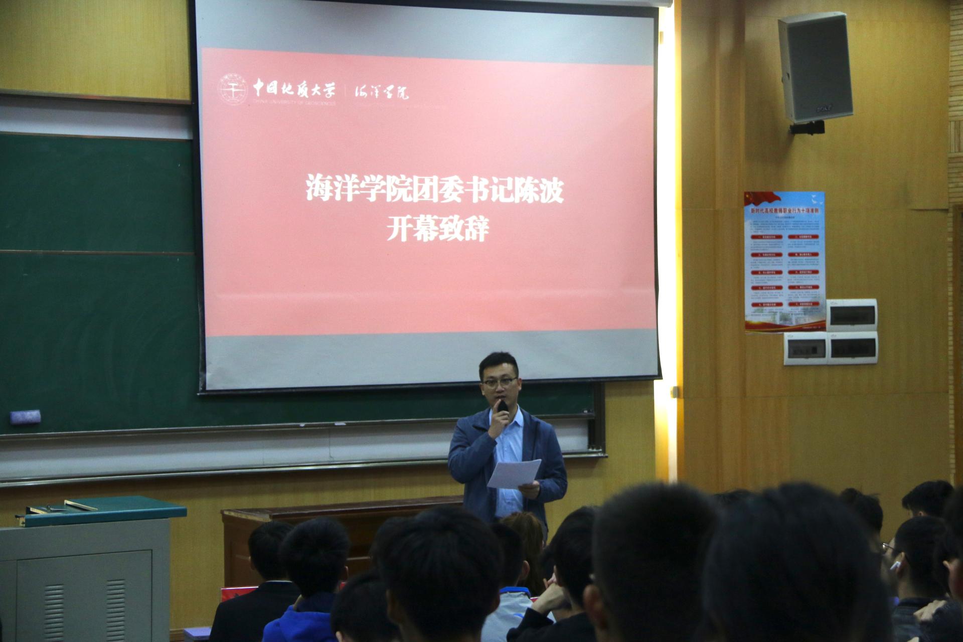 Av影片 团委书记陈波老师致开幕辞。他代表学院团委向大会的召开表示热烈的祝贺,并向全体学生代表以及全院广大青年学生致以亲切的问候。陈波老师对上一届团委学生会的工作表示高度肯定,也向新一届提出了期望,表示学生骨干应严格要求自身,发挥带头作用,传播正能量;同学们要不忘初心,坚持梦想,拓宽视野,勇于创新。他呼吁Av影片 全体青年要立足于学院发展建设不断奋斗,为学校全面建设地球科学领域世界一流大学贡献海洋力量。