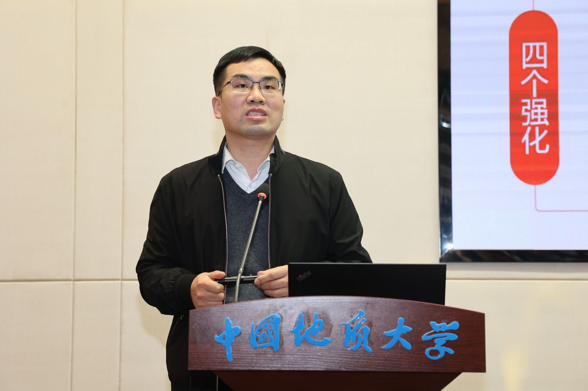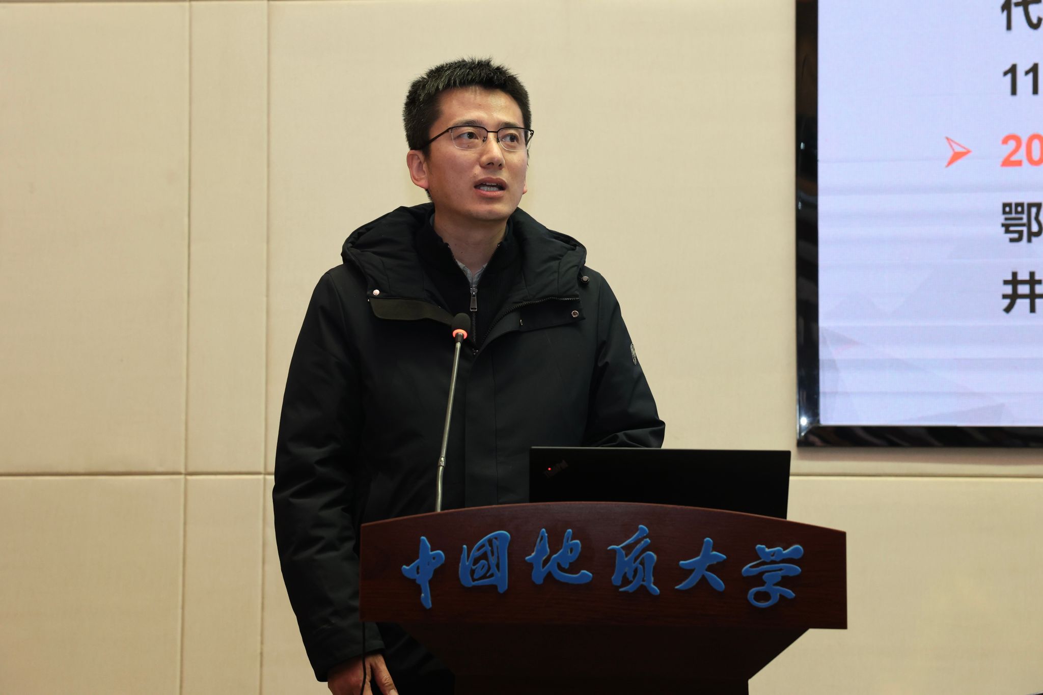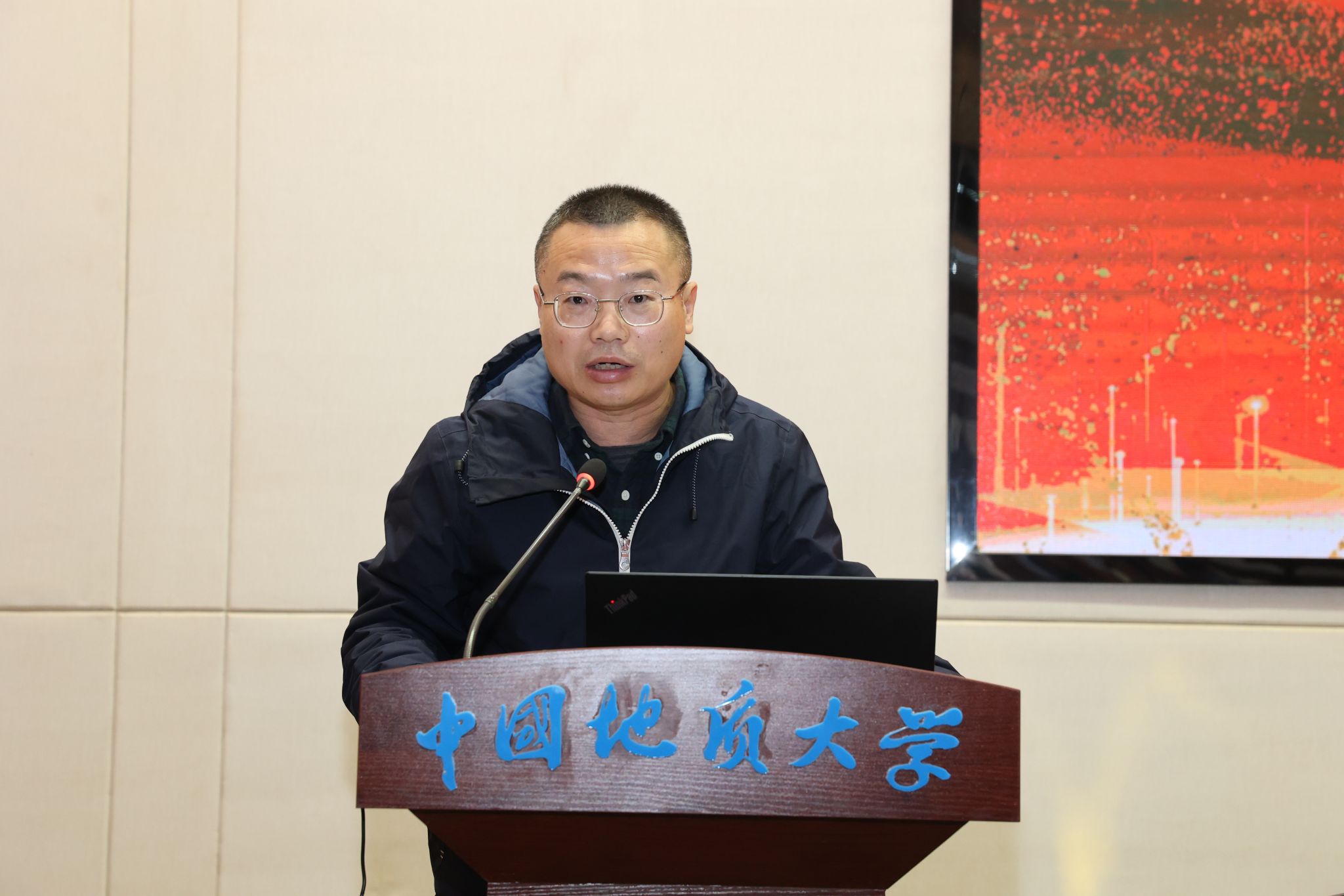 海洋地质资源湖北省重点实验室办公室主任程飞汇报2025年度工作总结及2026年工作重点。
