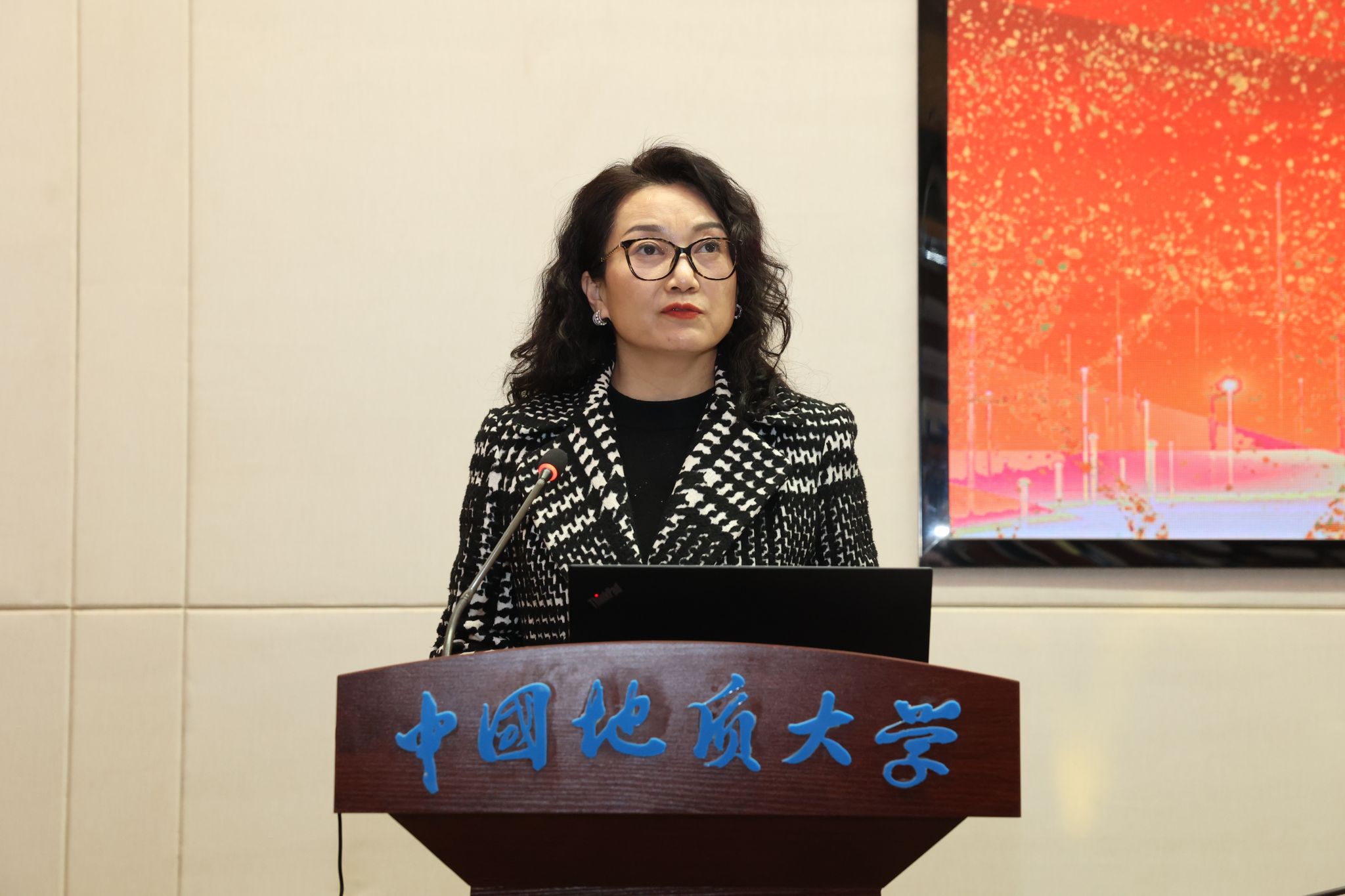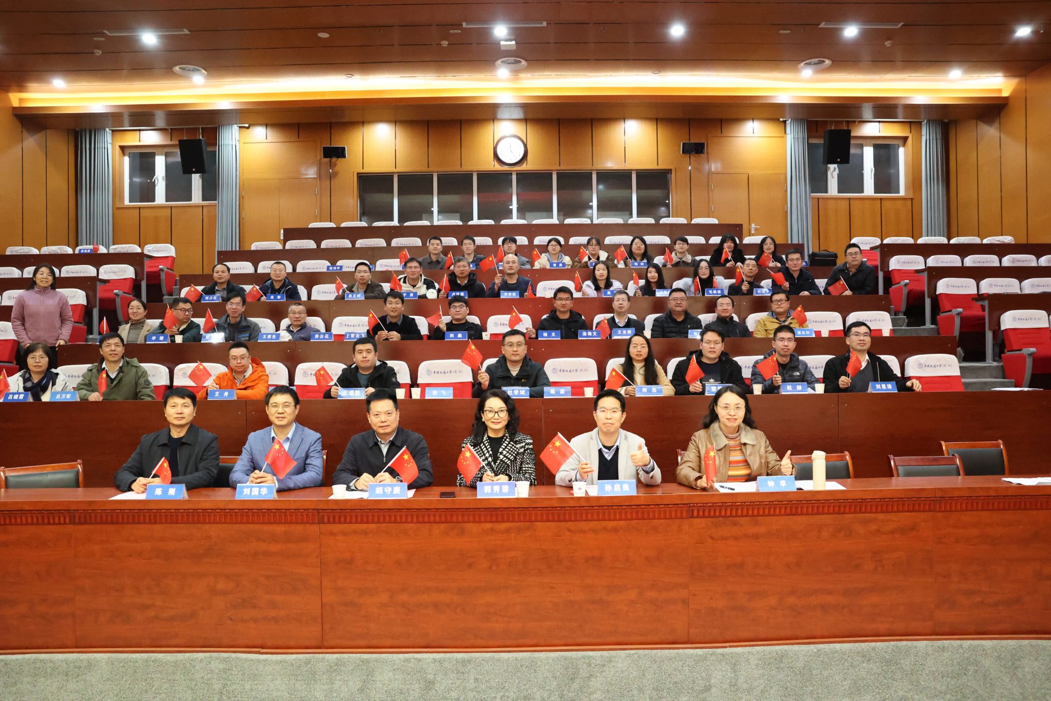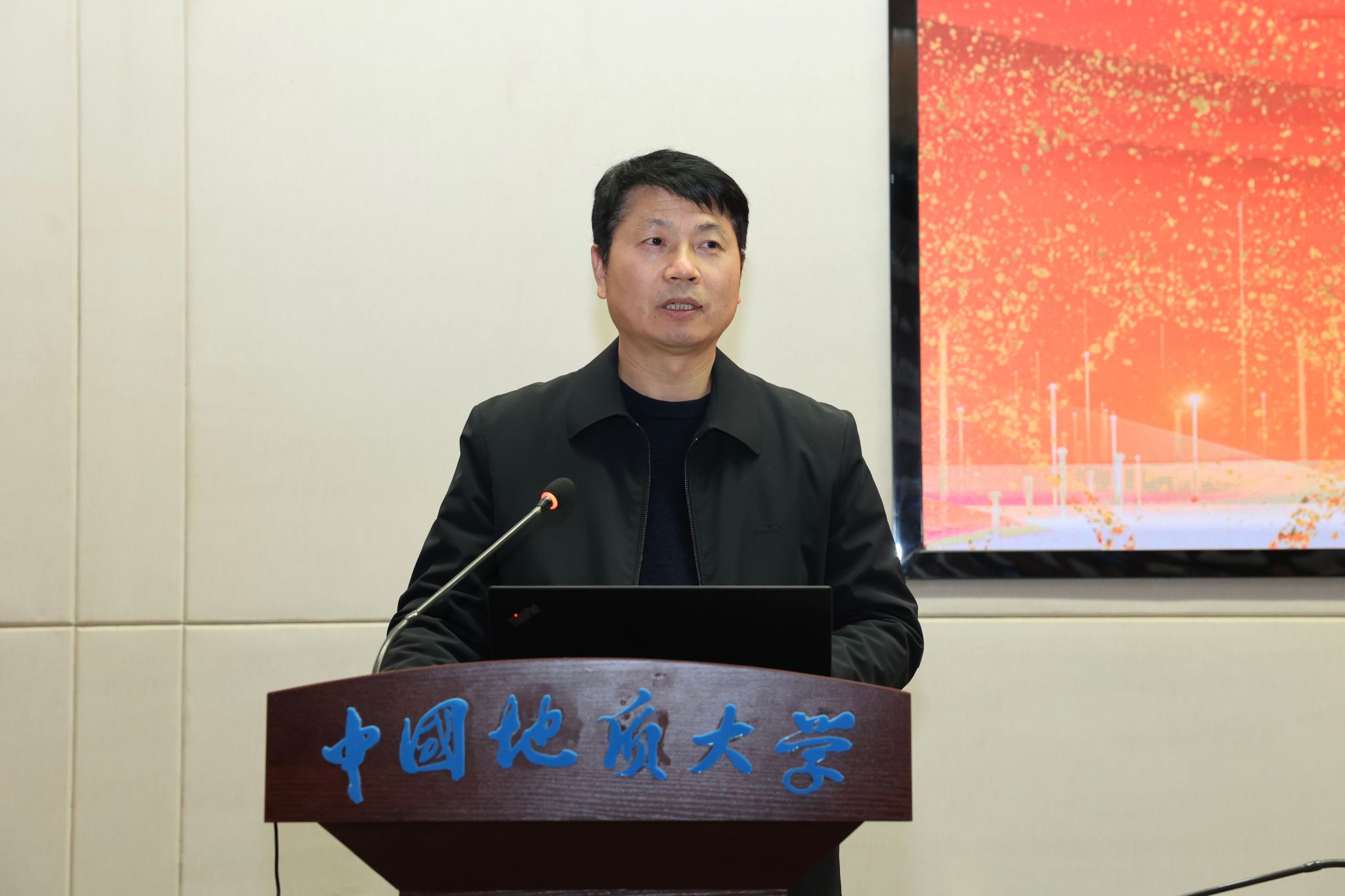 胡守庚副校长总结讲话。他高度肯定学院2025年度工作成效,指出过去一年,学院党政班子履职有力、师生同心奋进,科研经费到账额再创新高,人均经费位居学校前列;海洋地质资源湖北省重点实验室在学校省级平台考核中斩获佳绩。他强调,学院要锚定发展目标,持续做强高层次平台建设,着力破解师资队伍规模与高层次人才储备不足的瓶颈制约,整合海洋学科优势力量,科学谋划“十五五”发展蓝图,奋力在新征程上实现更大跨越。