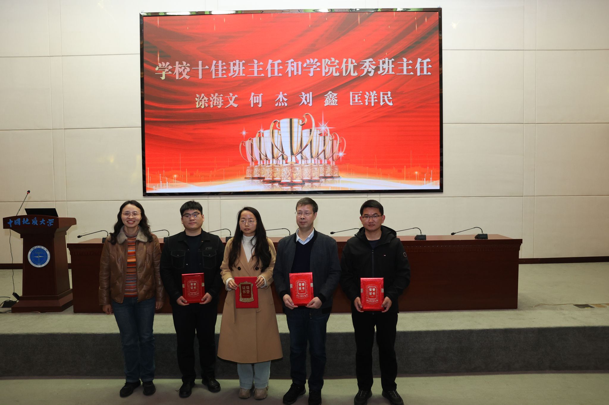 随后,胡守庚、郭秀蓉和刘国华、孙启良、陈刚、钟苹先后对39位教师予以不同类型的颁奖表彰。