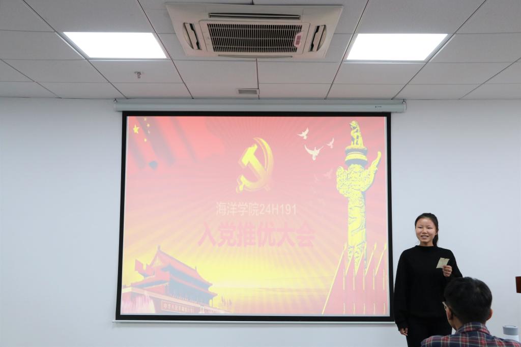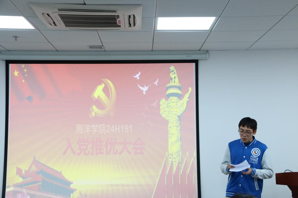 (通讯员:王锦怡)2019年10月26日下午,Av影片 24H191班团支部于东教A1805举行入党推优大会。本次大会由班长吴天婷主持,本科生党支部书记黄开旗同志出席会议,大会应到30人,实到26人,4人请假。