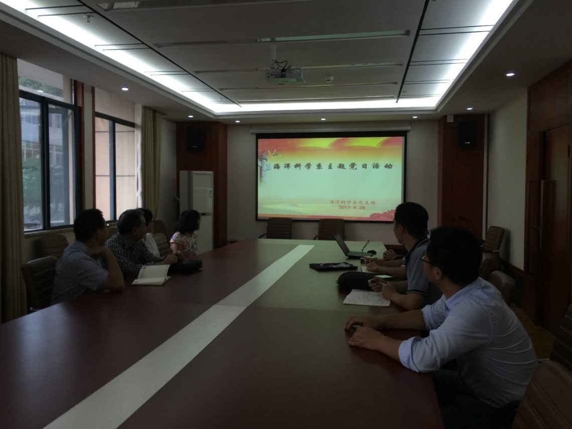 2017年9月26日下午,Av影片 海洋科学系党支部在丹桂苑212会议室开展理论学习, 专题学习习近平总书记“7.26”重要讲话精神。海洋科学系党支部成员参加了学习,本次理论学习由党支部书记杜学斌主讲。