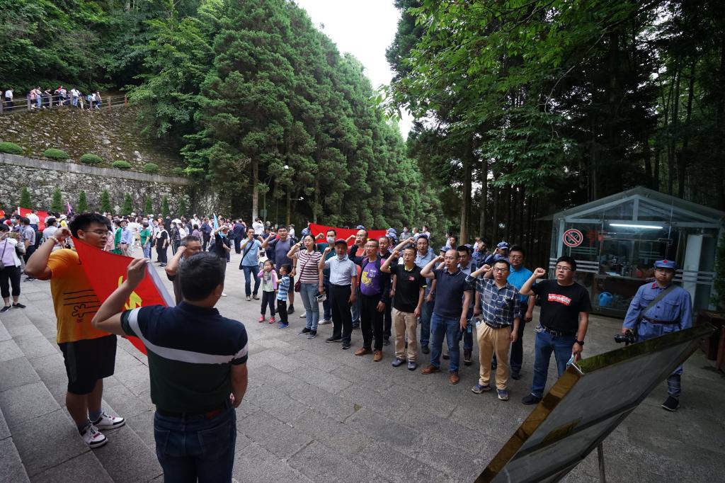 “我志愿加入中国共产党,拥护党的纲领,遵守党的章程,履行党员义务……”在井冈山北山革命烈士陵园,院党委书记成军同志带领大家面向鲜艳的党旗,举起右拳,一起重温入党誓词。大家以铿锵有力的宣誓声,表达不忘初心、牢记使命的信念和决心。