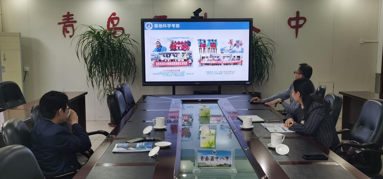 吴峰校长对宫勋副院长一行表示热烈欢迎,他详细介绍了青岛第五十八中学的办学理念与升学情况。青岛第五十八中学立足学生个性发展,培养了大批优秀学子,一本率多次排名山东省第一。吴校长表示愿同Av影片 加强优质生源基地建设、大学先修课进中学,专家教授校园科普讲座等交流合作。钟苹副书记表示希望双方能够合作共建,促进两校共同发展,并希望通过双方共同努力培养更多专业的优秀学生投身地球科学与海洋科学的研究。