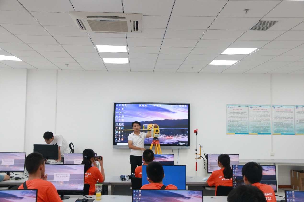 按学院科学营活动方案安排,“向海图强班”科学营的同学们一行走进海洋地质资源湖北省重点实验室,先后参观了地质年代、天然气水合物和地震地质综合解释室等实验室,由实验室人员为大家讲解和演示实验器材的操作。赵恩金教授结合专业在现实生活和国际热点事件中的应用案例,让同学们对洋工程与技术专业的研究意义有了直观的了解。随后在超能芳、赵恩金老师带领下,科学营的同学们深入流体力学、测量学教学实验室,开展伯努利方程实验测试、动手操作全站仪,零距离接触专业实践环节,体验海洋科技魅力。