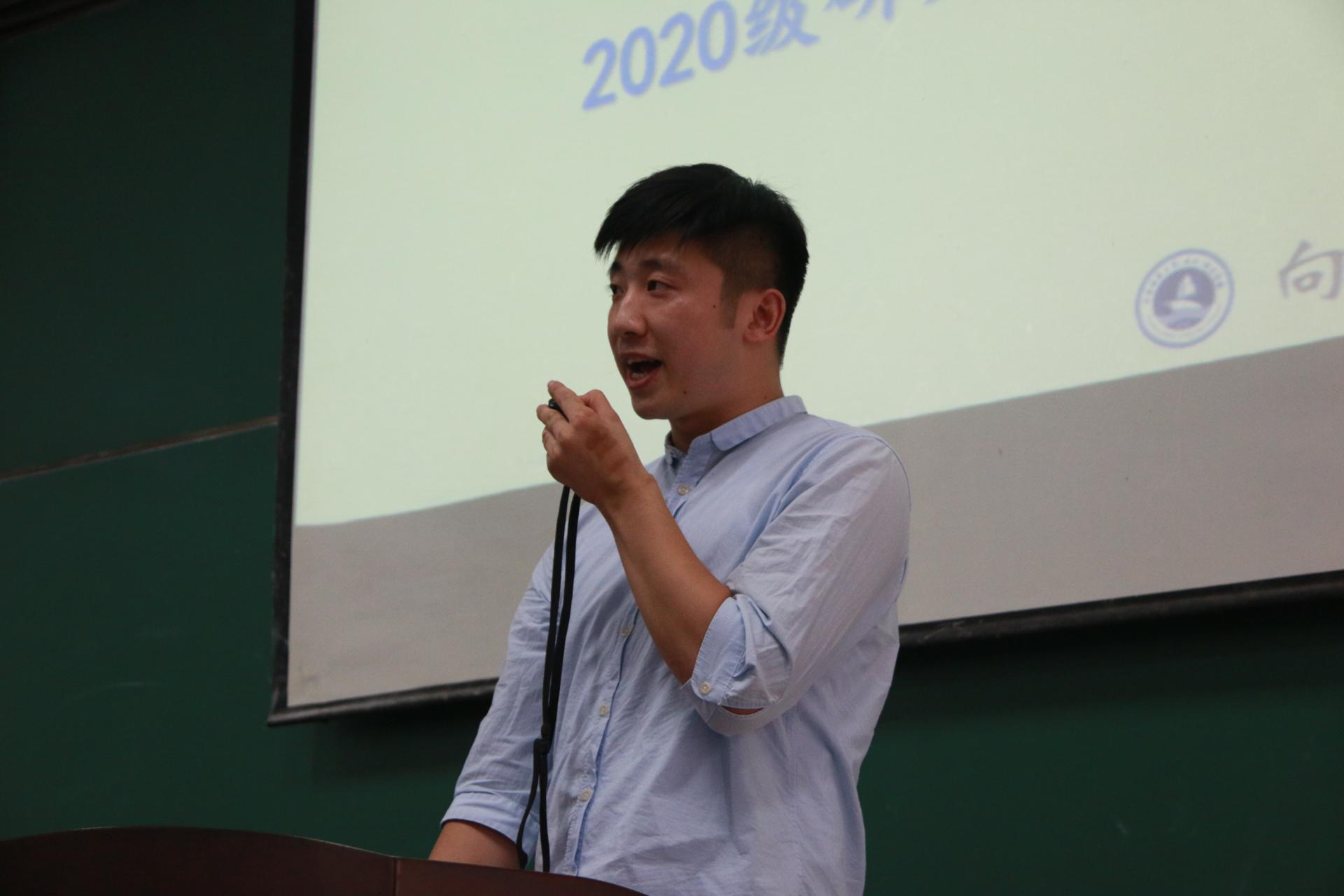 新生代表2021级本科生史相锴、老生代表2020级研究生魏子谦发言,表示作为地大海洋学子,要练就过硬本领,一齐为我国海洋事业热枕投入并不懈努力。