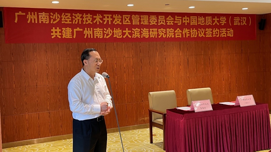 6月2日,王焰新校长带队前往广州,与广州南沙经济技术开发区管理委员签署协议,共建广州南沙地大滨海研究院(以下简称“滨海研究院”)。
