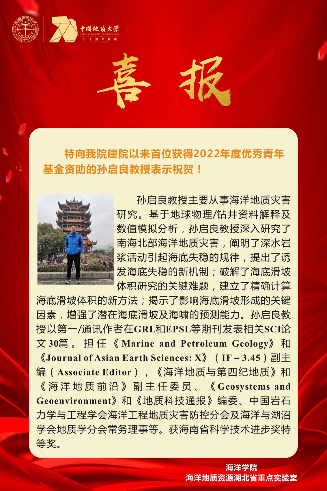喜报!祝贺Av影片 孙启良教授获得2022年度国家优秀青年科学基金项目资助!