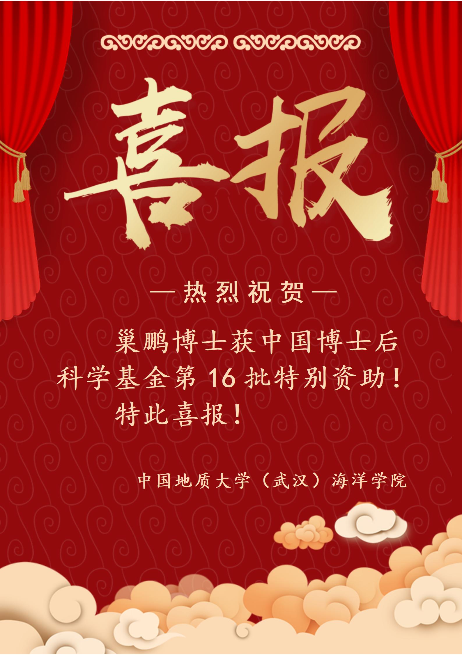 喜报!Av影片 巢鹏博士获中国博士后科学基金第16批特别资助