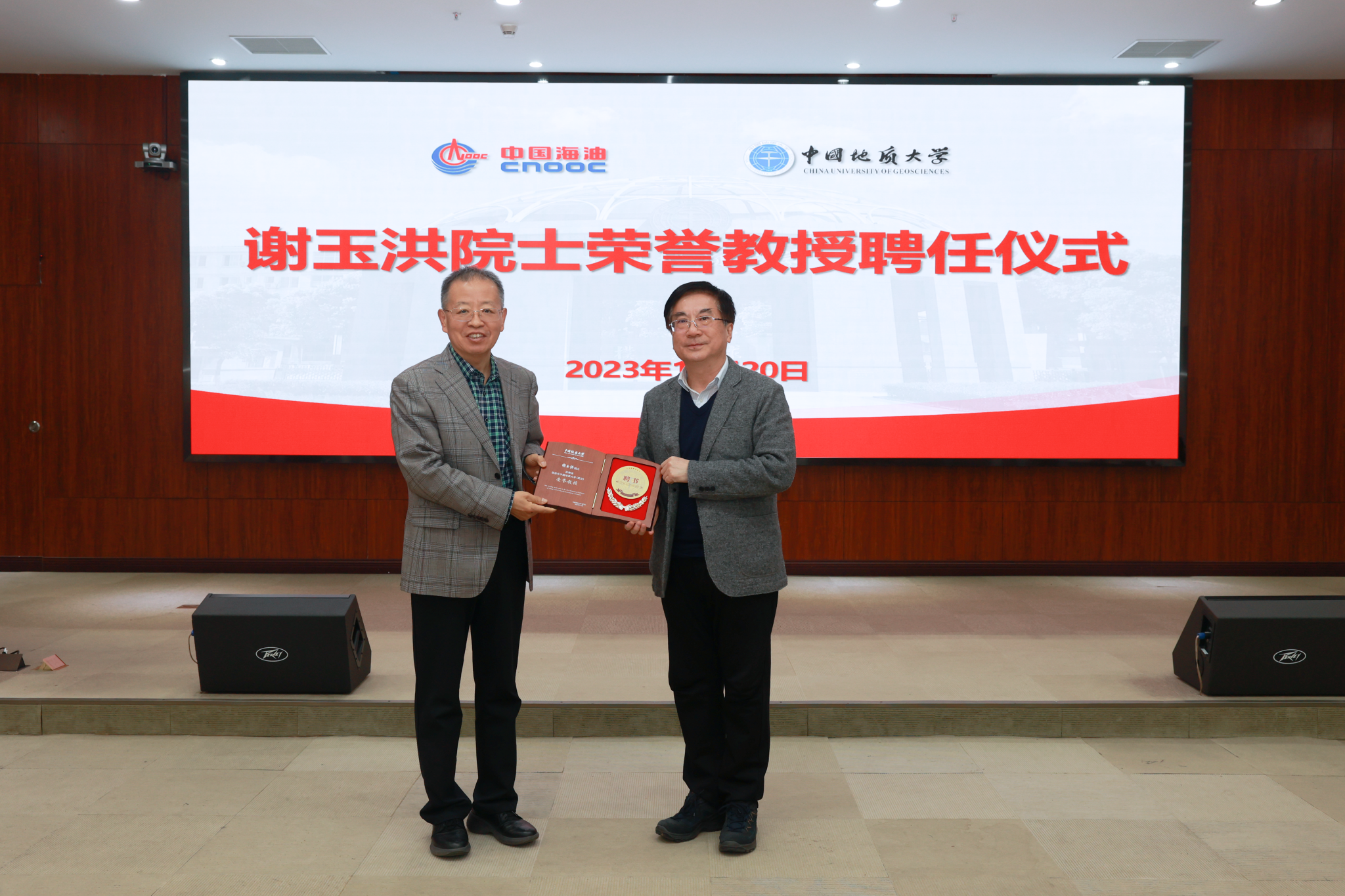 地大新闻网讯(通讯员 邓锡琴 张鑫 摄影 焦思勤)为推动学校人才队伍建设和学科专业发展,12月20日,Av影片 举行谢玉洪院士荣誉教授聘任仪式。中国海洋石油集团有限公司海南分公司副总经理兼总地质师吴克强,湛江分公司风险委专家王振峰,海南分公司总经理助理兼研究院党委书记、院长裴健翔,中海油研究总院集团专家张功成,Av影片 校长王焰新院士,副校长王华,原副校长姚书振及双方相关单位负责人等参加仪式。