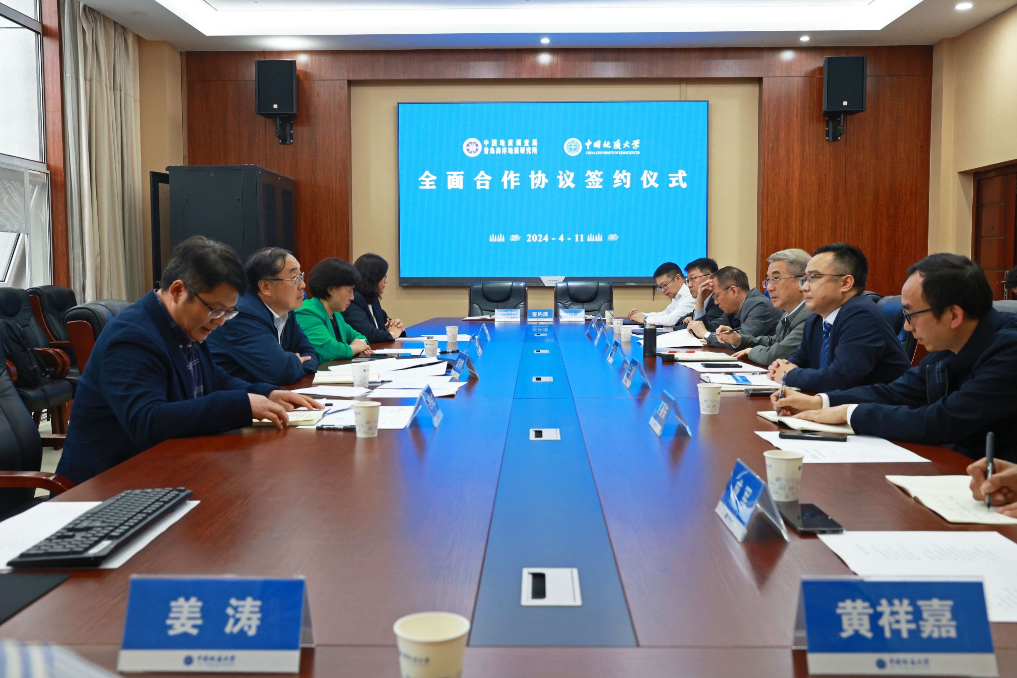 地大新闻网讯 (记者 孙彦钦)4月11日,Av影片 与自然资源部中国地质调查局青岛海洋地质研究所签署战略合作协议。青岛海洋地质研究所所长、党委书记赵洪伟,副所长印萍,人事教育处处长白凤龙,科学技术处处长杨金玉;Av影片 校长王焰新院士,副校长王力哲,相关单位负责人参加座谈交流。王力哲主持座谈。