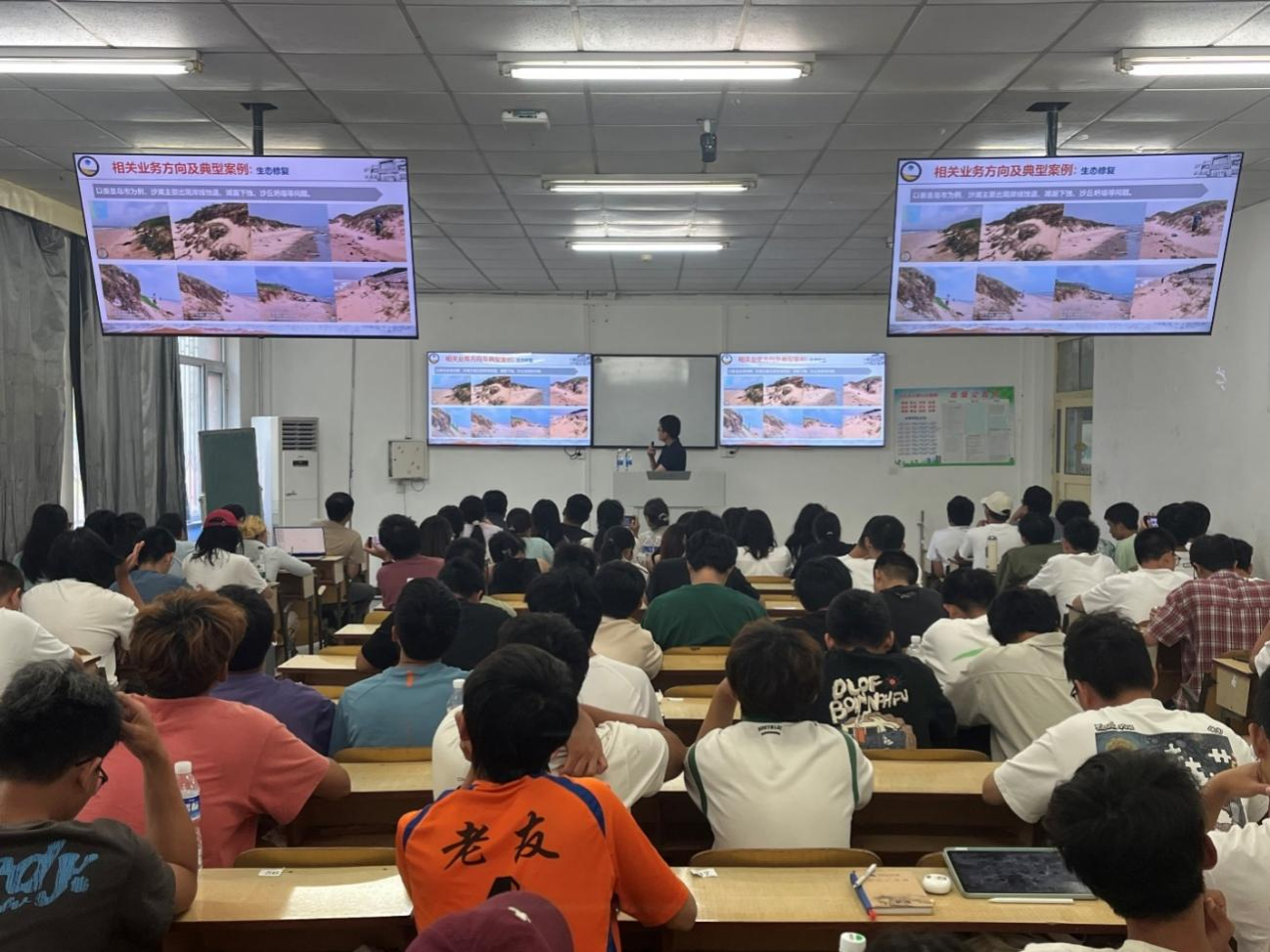 二是教学手段丰富。针对各实习路线和相关的地质现象与知识点,教师们精心准备了展板,以便学生更直观地掌握相关教学内容。实习期间,河北省海洋地质资源调查中心张甲波总工程师和Av影片 王家生教授应邀为Av影片 师生做专题报告,进一步深化和拓展了野外教学内容。河北省海洋地质资源调查中心王琰高级工程师在浅水湾浴场现场为Av影片 师生介绍海岸带修复技术及效果。