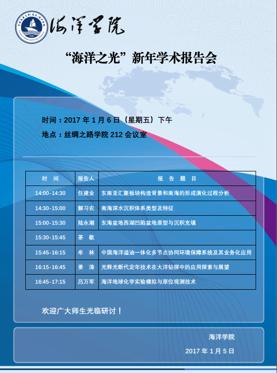 2017年1月6日14时,Av影片 主办的“海洋之光新年学术报告会”在丝绸之路学院212会议室正式举行。