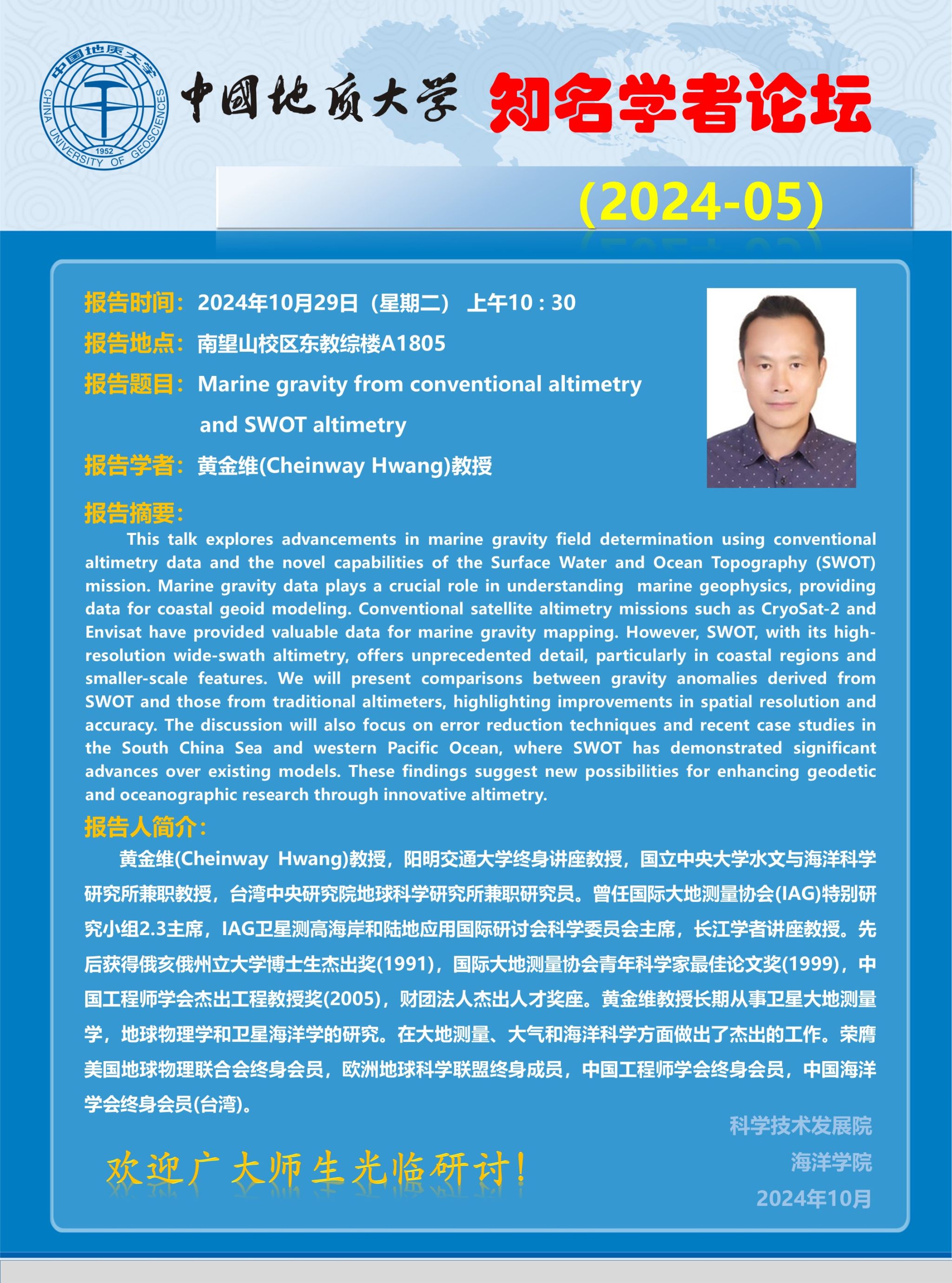 知名学者学术讲座——黄金维(Cheinway Hwang)教授