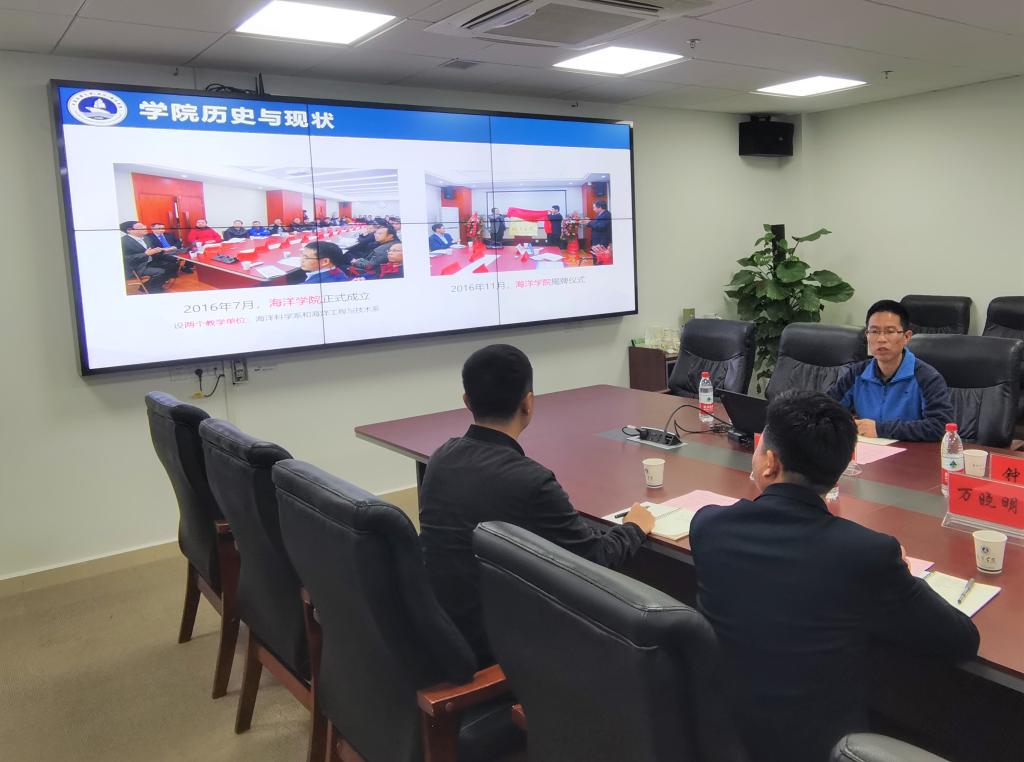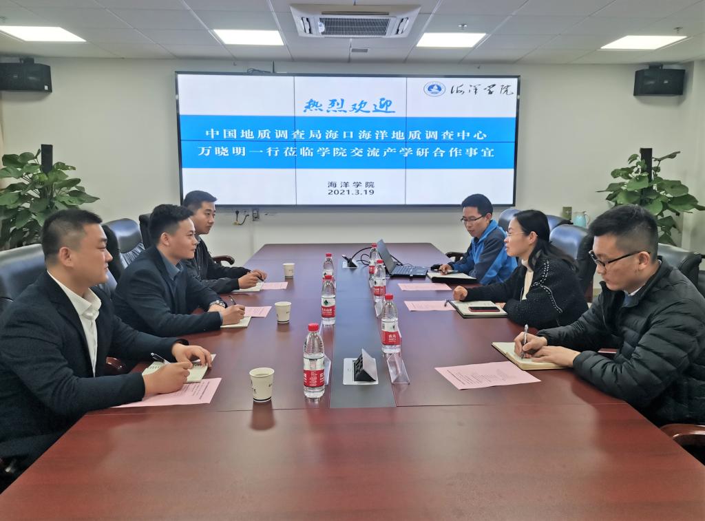 3月18日,中国地质调查局海口海洋地质调查中心副主任万晓明、人教室主任王宇、人教室梁超一行三人来学院调研交流,座谈会在东教A座1804会议室举行。Av影片 党委副书记钟苹、副院长孙启良参加会议,会议由钟苹主持。