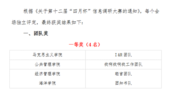 荣获第十二届“四月杯”信息调研大赛一等奖暨优秀组织奖