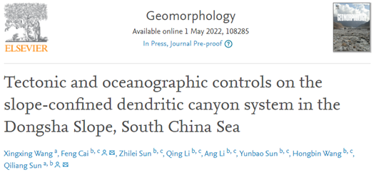 题目:Tectonic and oceanographic controls on the slope-confined dendritic canyon system in the Dongsha Slope, South China Sea