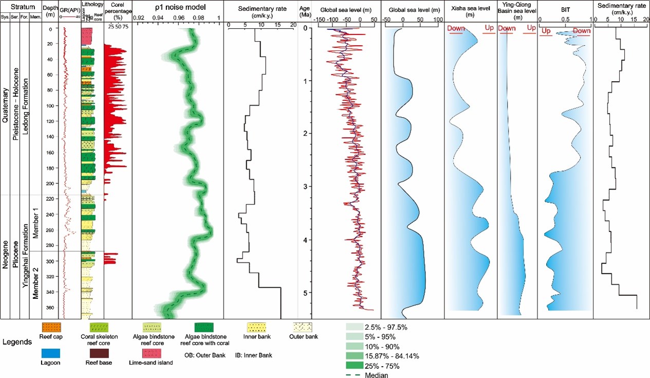 本研究利用噪声模型分析生物礁发育时期的相对海平面变化,探明了上新世以来海平面变化对生物礁发育的控制作用,对探明生物礁的生长过程以及对未来生物礁生长环境的预测都有着重要的意义和参考价值。