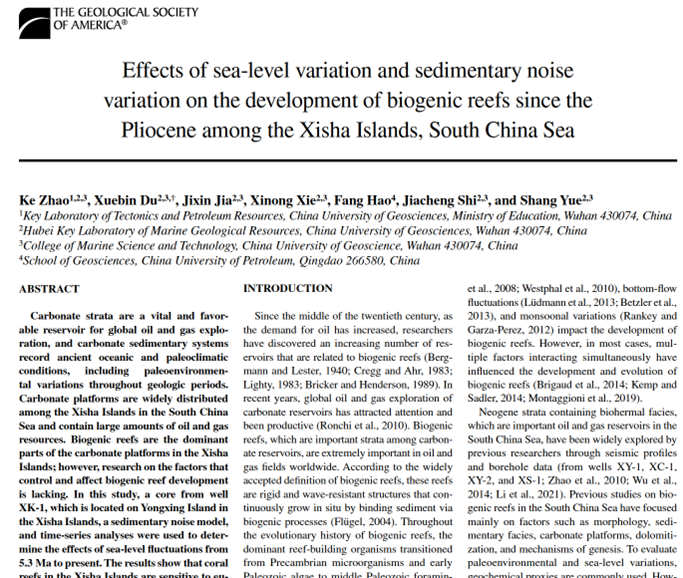 GSA Bulletin: 海平面和沉积噪声变化在南海西沙群岛生物礁发育的响应
