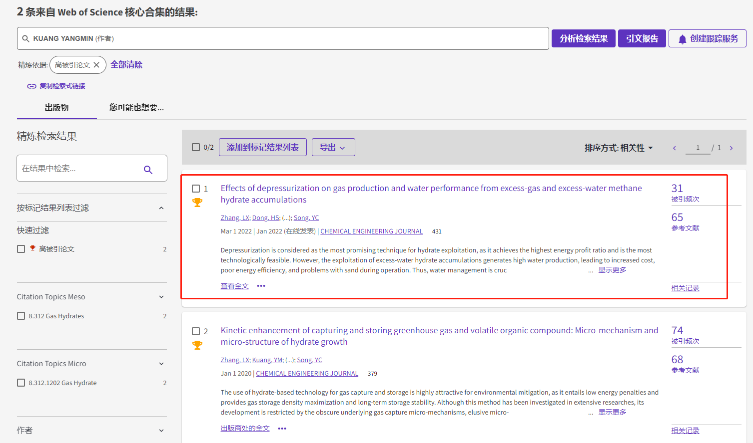 根据基本科学指标数据库(Essential Science Indicators,简称ESI)最新数据显示,Av影片 匡洋民副教授作为通讯作者2022年在国际化学工程顶级期刊《Chemical Engineering Journal》(IF=16.744)上发表的学术论文《Effects of depressurization on gas production and water performance from excess-gas and excess-water methane hydrate accumulations》入选ESI高被引论文(Highly Cited Paper)。