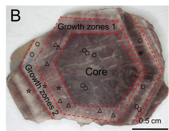 俯冲碳输入能够进入大地幔楔从而对板内和弧后玄武岩浆产生显著的贡献,基于日本海和中国东部新生代玄武岩携带的深源包体中刚玉等矿物环带含碳流体的观测,发现刚玉生长环带与其核心二氧化碳包裹体有着显然不同的密度和碳同位素组成,指示着古太平洋板块俯冲使得中国东部岩石圈发生碳酸盐交代作用、部分熔融形成的碱性玄武岩浆上升显著改造中国东部上地幔和下地壳、致使其中碳同位素逐渐显著负偏,同时在岩浆在上升过程发生的脱气作用也是引起其碳同位素负偏的重要因素,进而随岩浆喷发至地表引发地史上碳同位素负偏事件。