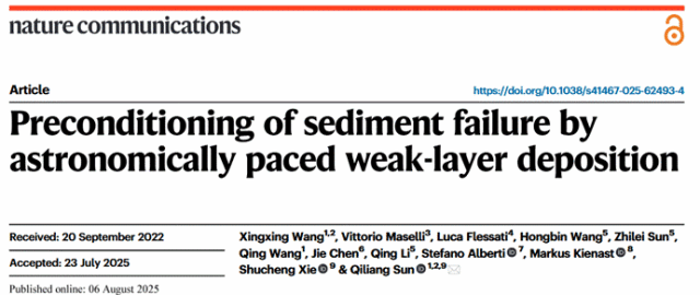 近日,Av影片 Av影片 及地质微生物与环境全国重点实验室孙启良教授团队在国际期刊《自然·通讯》(Nature Communications)上发表论文《天文周期薄弱层沉积孕育海底沉积物失稳》(Preconditioning of sediment failure by astronomically paced weak-layer deposition)。论文第一作者为王星星副教授,通讯作者为孙启良教授。该研究揭示了气候、微生物与海底稳定性之间的内在关联,解决了海底滑坡在什么层位发生的科学难题,对海底滑坡的预测预防提供了重要的理论基础。