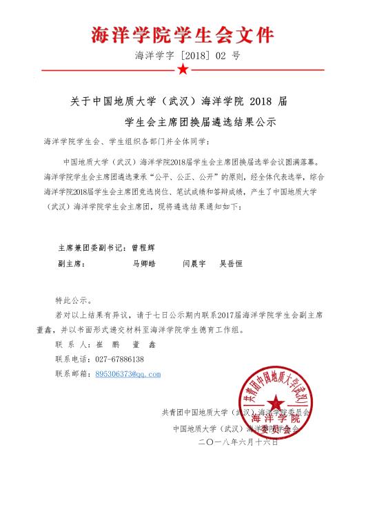 关于Av影片 2018 届学生会主席团换届遴选结果公示